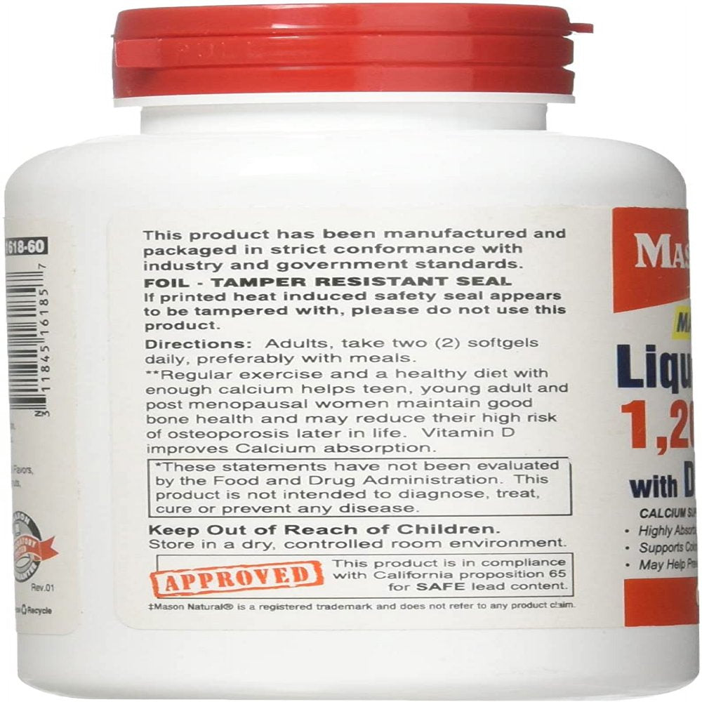 Mason Natural Liquid Calcium 1200 Mg with D3 2000 IU Softgels 60 Ea (Pack of 2)