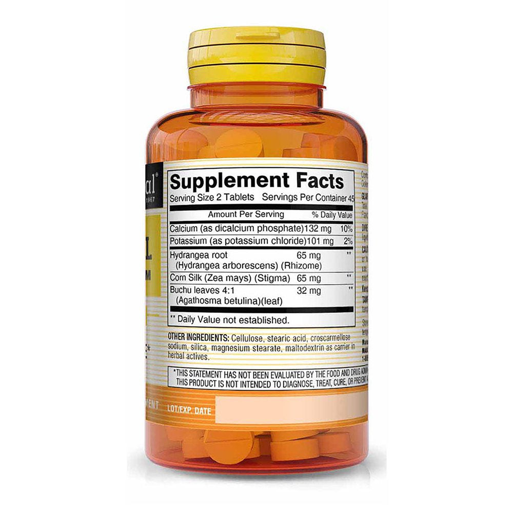 Calcium (as dicalcium phosphate) 132 mg 10% Potassium (as potassium chloride) 101 mg 2% Hydrangea root 65 mg ** Corn Silk (Zea mays) (Stigma) 65 mg ** Buchu leaves 4:1 32 mg ** OTHER INGREDIENTS: Cellulose, stearic acid, croscarmellose sodium, silica, magnesium stearate, maltodextrin as a carrier in herbal actives. Adults - Take two tablets at bedtime with 8 oz of liquid, preferably with food, as a dietary supplement. Color variation is possible./div>