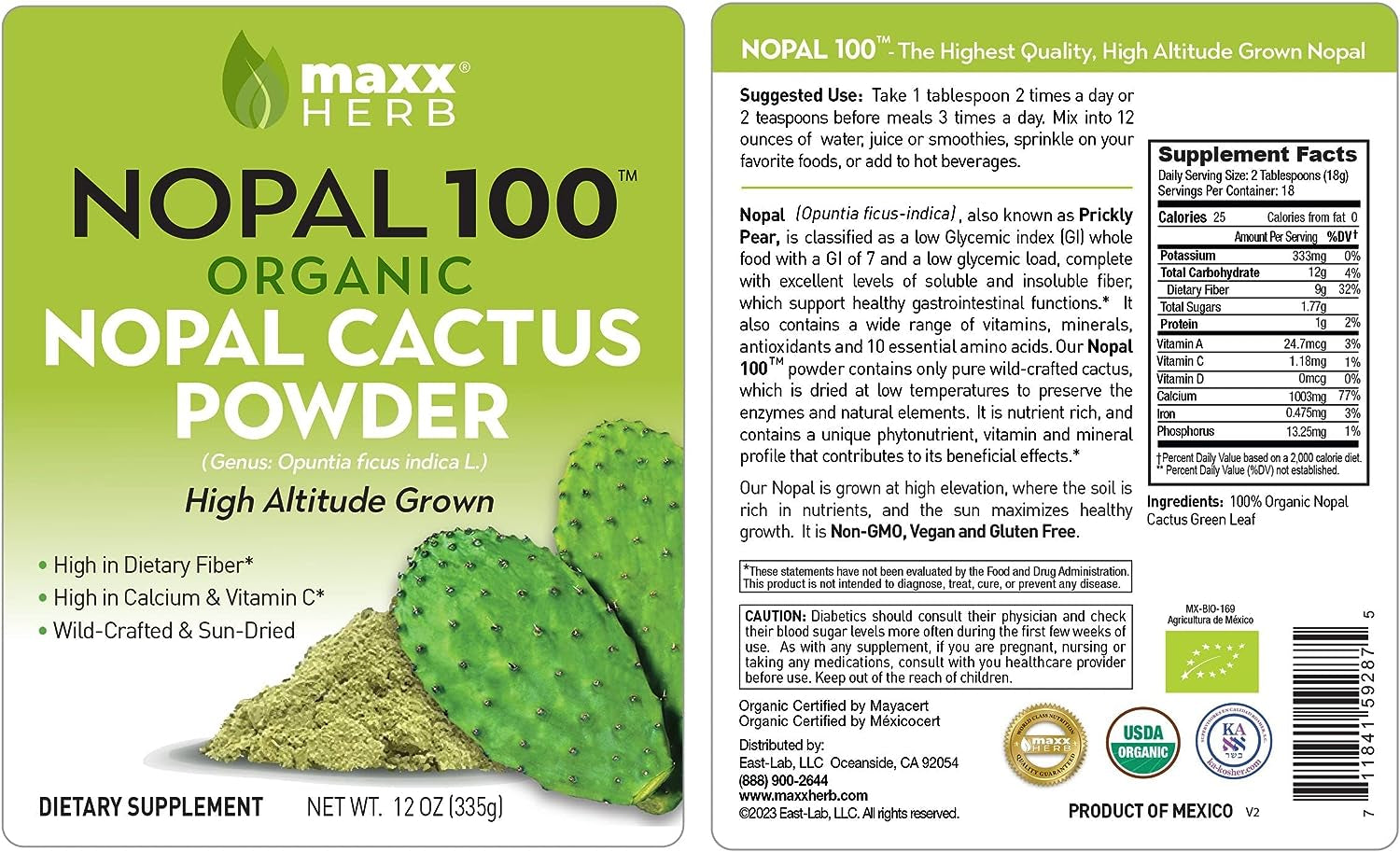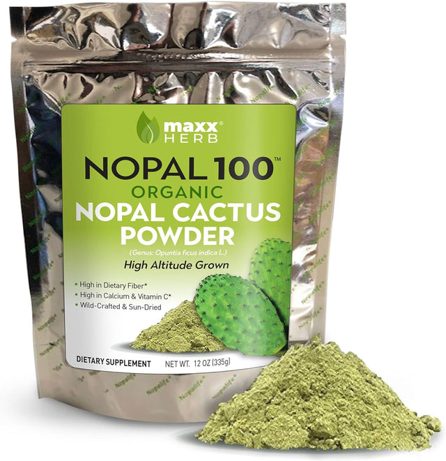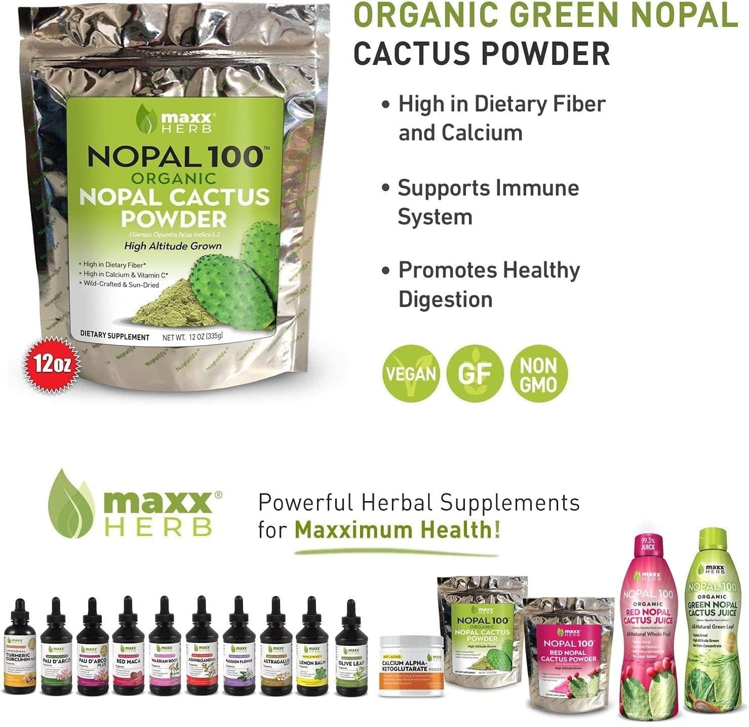 Maxx Herb Organic Nopal Cactus Powder, for Healthy Digestion & Immune Support, High in Dietary Fiber, & Calcium, Vegan, Non-Gmo and Gluten Free - 12 Oz Bag