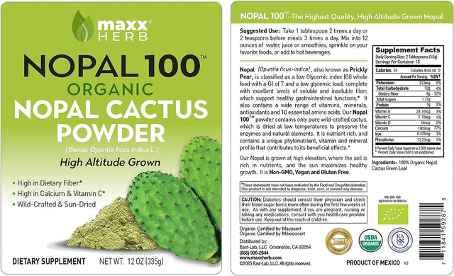 Maxx Herb Organic Nopal Cactus Powder, for Healthy Digestion & Immune Support, High in Dietary Fiber, & Calcium, Vegan, Non-Gmo and Gluten Free - 12 Oz Bag - 12 Ounce (Pack Of 1) is backordered and will ship as soon as it is back in stock.