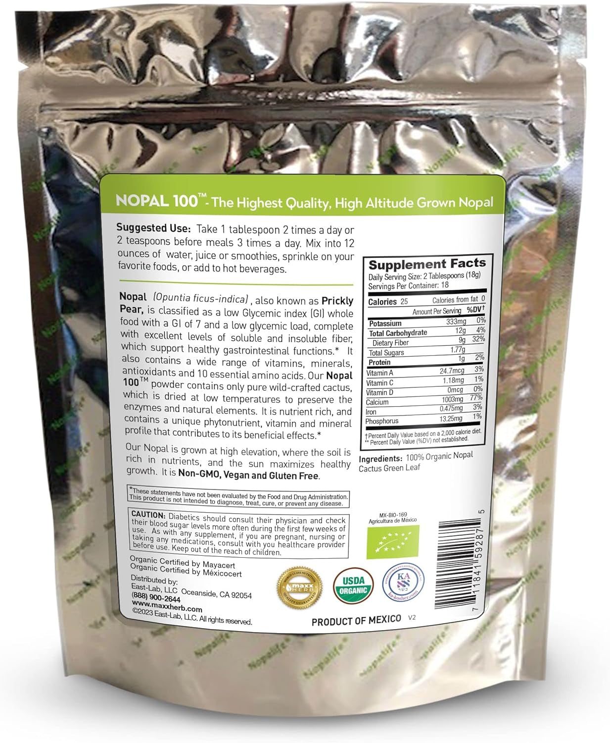 - MAXIMUM STRENGTH – Most Nopal powder supplements have fillers and or additional ingredients and not as effective as our 100% Pure Nopal Cactus Green Leaf Powder. At Maxx Herb, our Nopal is hand harvested. Fresh from our farm made with your health in mind. Servings Size: 2 tablespoons - Take 1 tablespoon 2 times per bay or 2 teaspoons before meals 3 times per day. Serving per container: 18 (2 tablespoons)