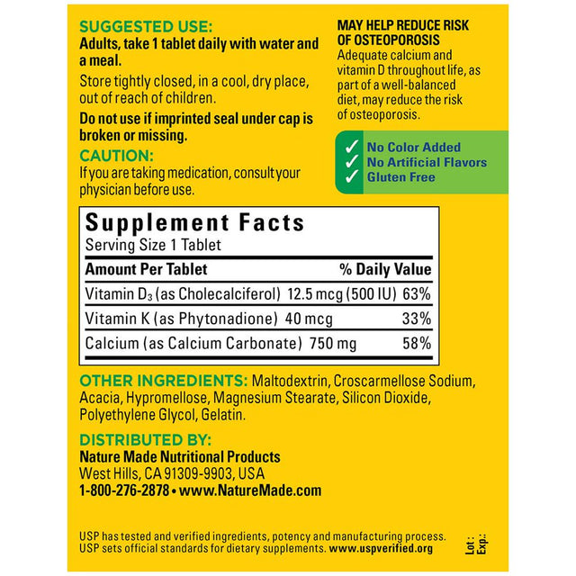 Nature Made Calcium 750 Mg + D + K 300 Tablets