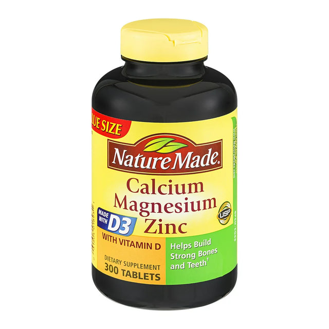 - Contains up to a 300-day supply of Nature Made Calcium Magnesium Zinc with Vitamin D3 Tablets, 300 tablets per bottle.