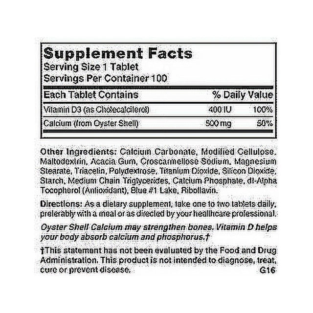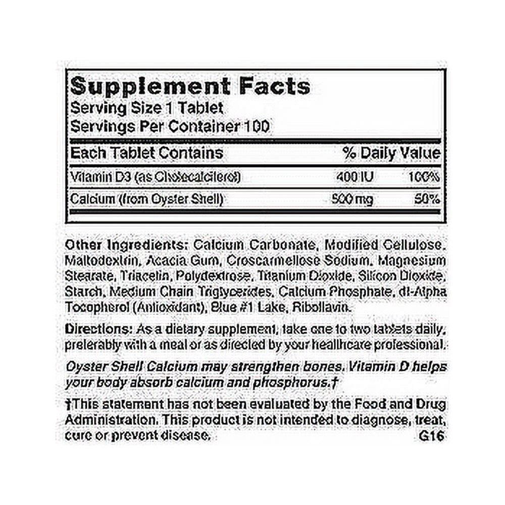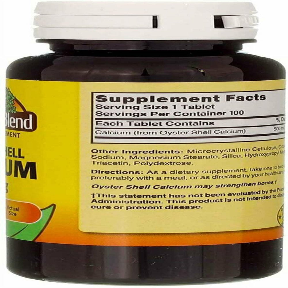 Nature'S Blend Oyster Shell Calcium 500Mg with D3 Vitamin D3, 100 Ct, 6 Pack