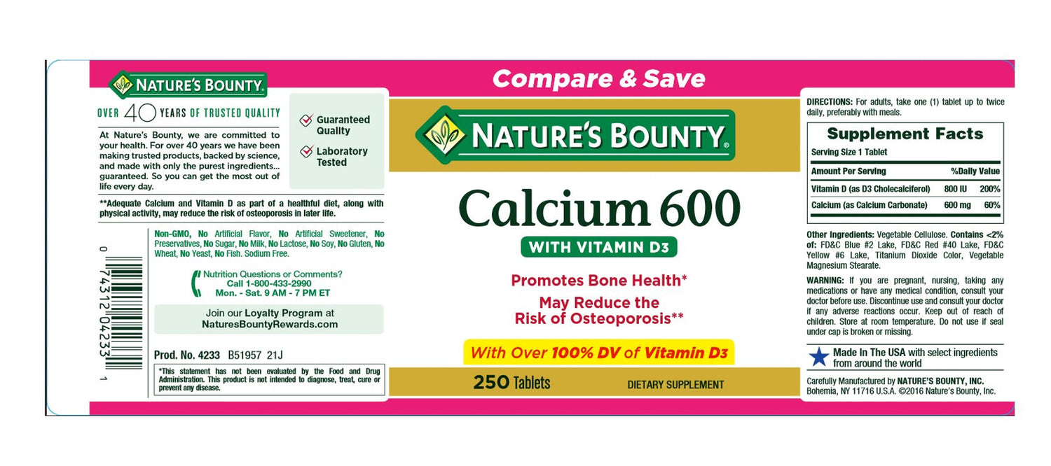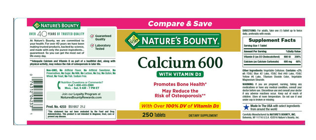Nature'S Bounty Calcium 600 with Vitamin D3 Tablets 250 Tablets - Single is backordered and will ship as soon as it is back in stock.