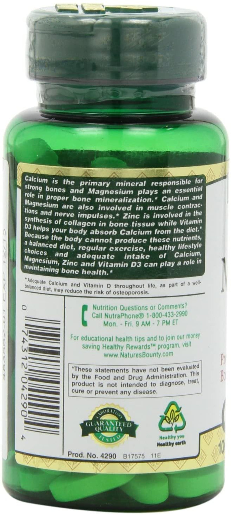 - Nature's Bounty Calcium Magnesium Zinc Caplets, 100 ea