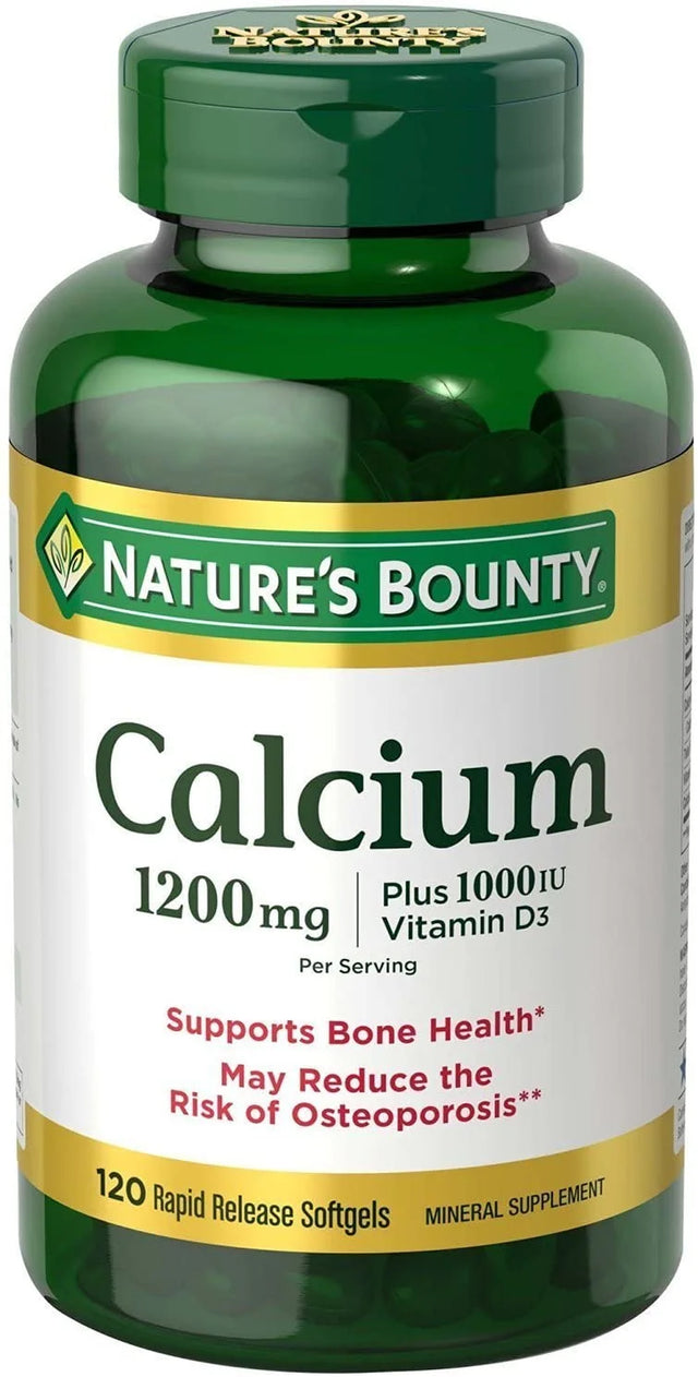 Nature's Bounty Calcium Plus Vitamin D3 1200 mg Rapid Release Softgels, 120 Ea, 3 Pack ; UPC: 074312134371. Nature's Bounty Calcium is the primary mineral responsible for strong, healthy bones. These softgels are enhanced with Vitamin D, which assists with Calcium absorption and immune support. May reduce the risk of Osteoporosis. No Artificial Flavor, No Preservatives, No Sugar, No Starch, No Milk, No Lactose, No Gluten, No Wheat, No Yeast, No Fish. Sodium Free.
