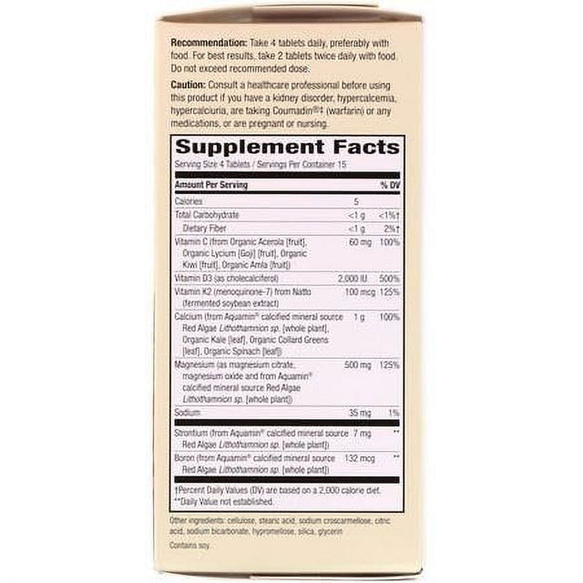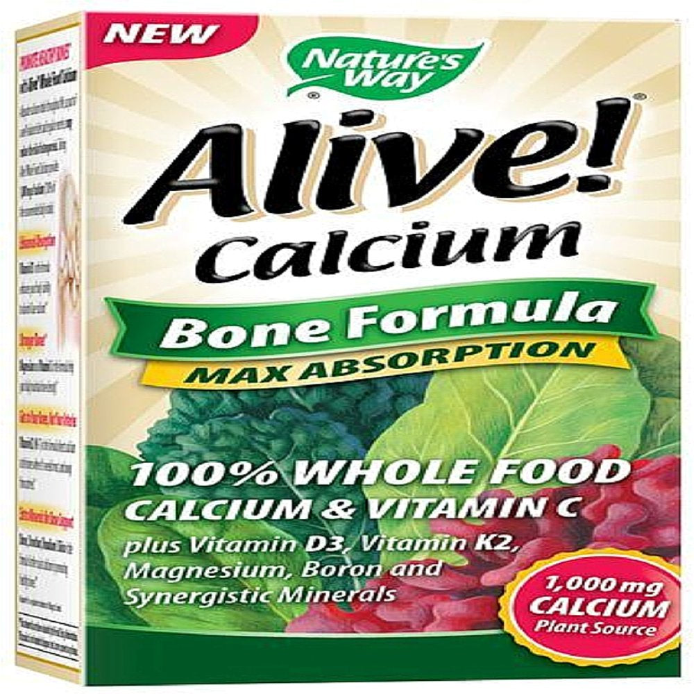 - Pack of 2 for the UPC: 033674158388 Adequate calcium intake throughout life, as part of a well-balanced diet and regular exercise, may reduce the risk of osteoporosis. Taking Alive!® Whole Food Calcium provides 1,000 mg of calcium (100% of the recommended daily intake). While many supplements contain calcium from limestone ock or animal bones, Aliv!® Whole Food Calcium provides calcium and 70+ trace minerals in a natural food matrix that may be easier for the body to digest, absorb and utilize. Alive!® Whole Food Calcium tablets are specially designed to dissolve quickly in the digestive tract to help ensure a maximum level of nutrients are available to be absorbed.
