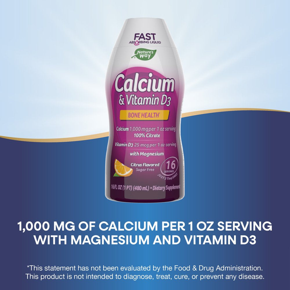 Nature's Way Calcium & Vitamin D3 Bone Health Liquid Supplement, Citrus Flavored, 16 fl oz.