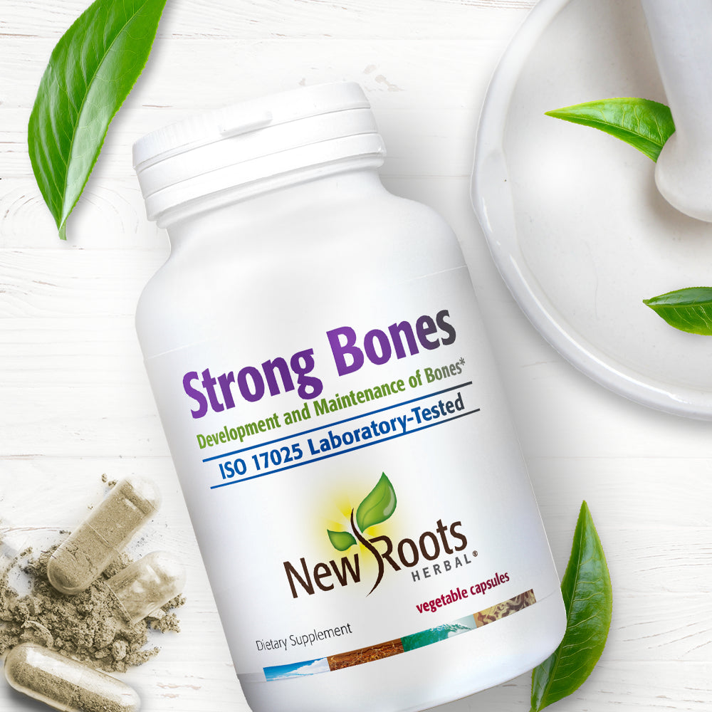 - The New Roots Herbal Strong Bones formula was developed to provide your bones with the 12 vitamins and minerals they need to support you so you can lead a full active life.
