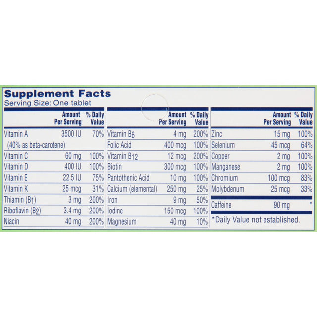 | Features | One A Day Energy Multivitamin designed with B-Vitamins and caffeine |