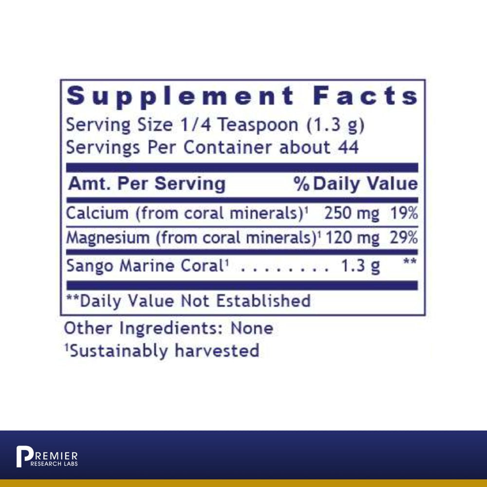 Premier Research Labs Calcium Magnesium - Pure Sango Marine Coral Powder - Supports Bone, Joint, Teeth & Alkaline Ph for Whole-Body Health - Non-Gmo Supplement with No Added Stearates - 2 Oz