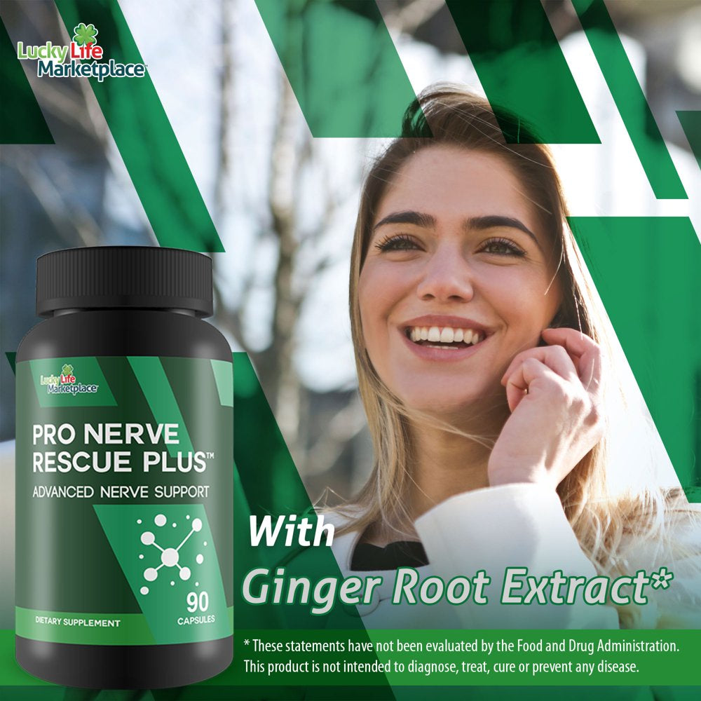 Pro Nerve Rescue Plus is a premium dietary supplement designed to provide daily nerve health support. The advanced nerve support formula contains over 20 vitamins, minerals, herbs, and antioxidants making it one of our best nerve support supplements ever created. Each ingredient was carefully selected to support healthy nerves. Some of the key ingredients are Vitamin C, Vitamin D, Turmeric, Zinc, Green Tea Extract, Ginger Root Extract, Cinnamon, and Magnesium Oxide. Pro Nerve Rescue Plus supports healthy inflammatory response, circulation, and blood flow for complete nerve health support. Each nerve support capsule aims to promote total balance and comfort throughout your body.