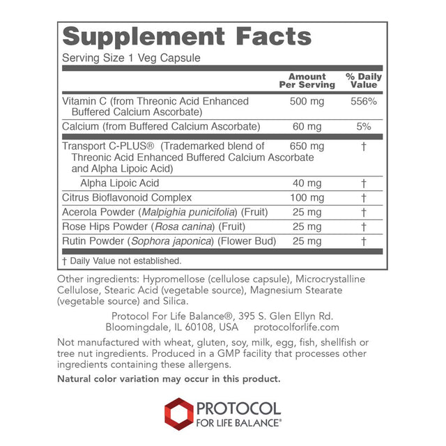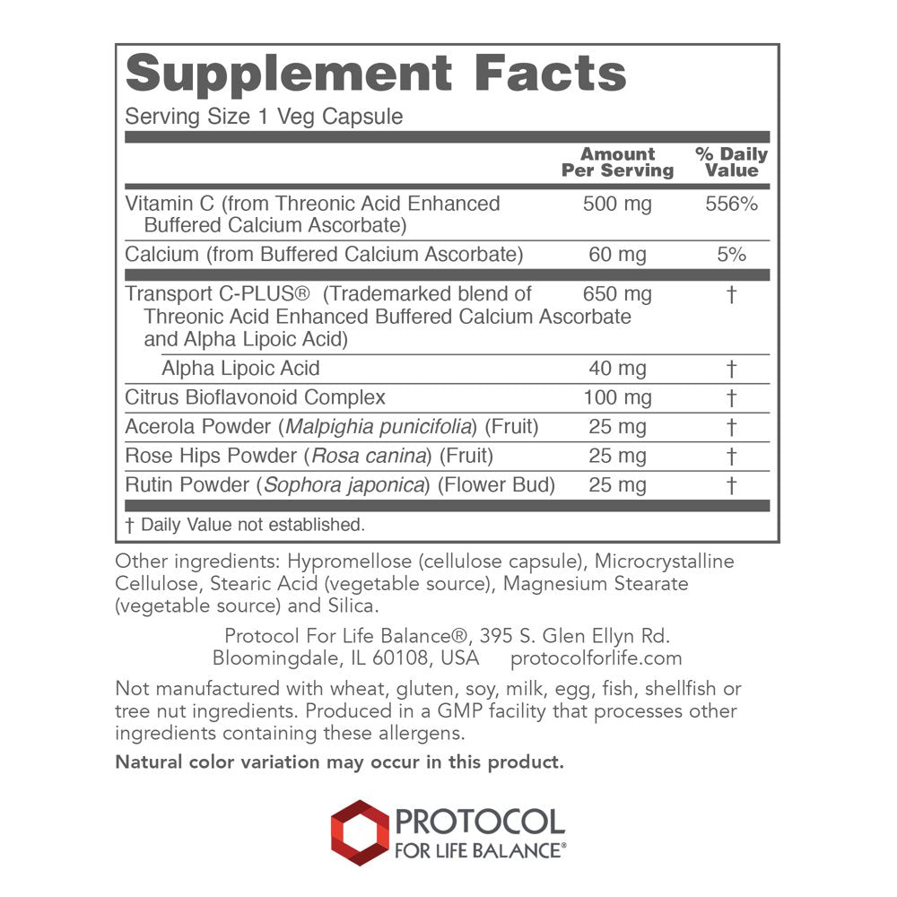 ProtoSorb C is a unique formulation featuring Transport C-PLUS Threonic Acid, which has been shown to enhance uptake of Vitamin C.* This buffered, non-acidic Vitamin C supplement also contributes Alpha- Lipoic Acid, a scavenger known to help regenerate both Vitamin C and glutathione in the body.* Studies suggest that Alpha-Lipoic Acid may further promote the body's utilization of Vitamin C, by activating uptake into cells via the glucose transport pathways.* Bioflavonoids also synergistically participate at the cellular level to create a well-absorbed, highly biologically available Vitamin C supplement.* Vitamin C is required for the synthesis of collagen, a structural component of blood vessels, tendons, ligaments, and bone.* Transport C-PLUS is a registered trademark of Helios Corp.