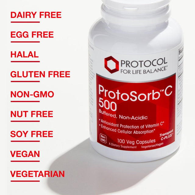 Protocol Protosorb Vitamin C 500Mg - Immune System Boost - Calcium, Rose Hips, Rutin - 100 Veg Caps