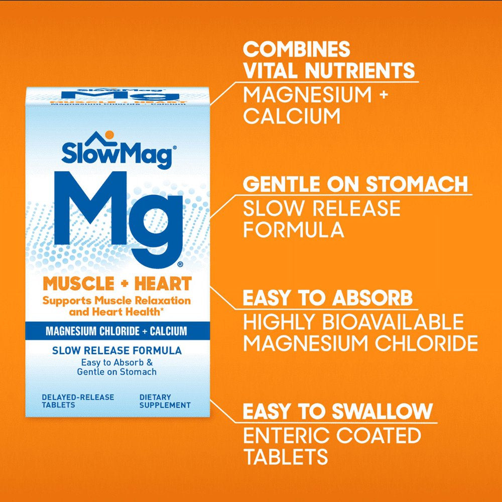 • COMBINES MAGNESIUM + CALCIUM: Unlike many branded magnesium supplements, SlowMag® Muscle + Heart has both calcium and magnesium chloride – key electrolytes needed for proper muscle & nerve function and cardiovascular health*