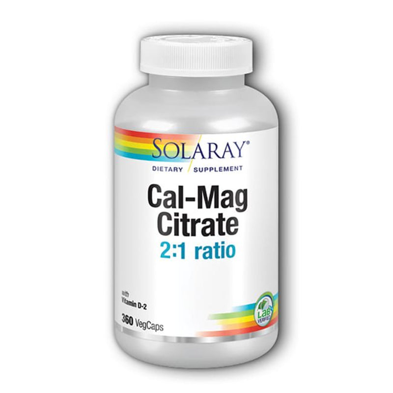 Solaray Calcium Magnesium Citrate 2:1 Ratio with Vitamin D2, Healthy Bone, Muscle & Nerve Support, 60 Serv, 360 Vegcaps