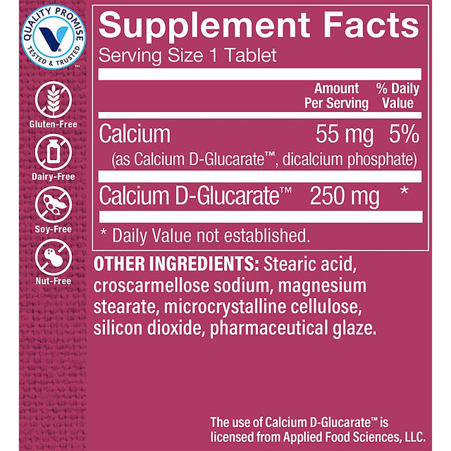 The Vitamin Shoppe Calcium D-Glucarate 250MG, Natural Substance for Women'S Health That Supports Estrogen Metabolism & Hormone Balance through Detoxification (60 Tablets)