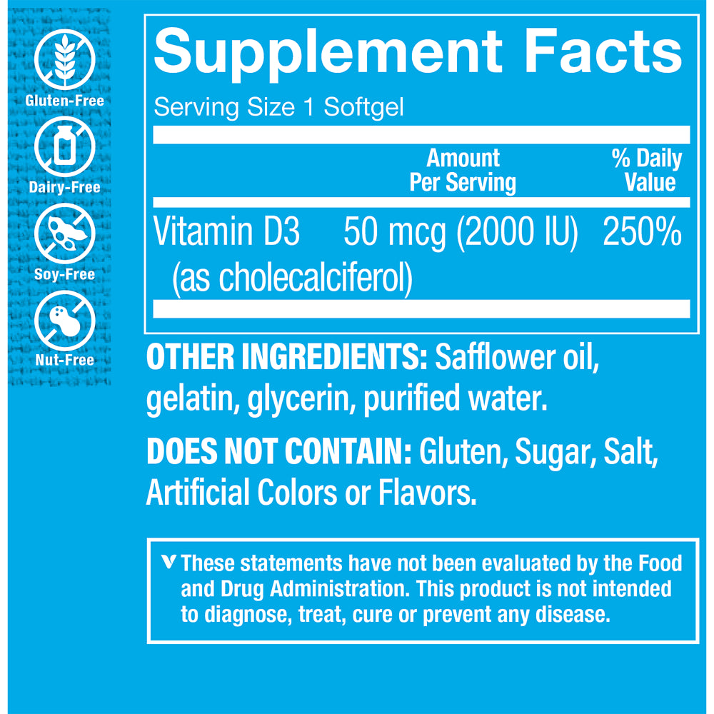 A single The Vitamin Shoppe? brand Vitamin D3 softgel features 2,000 IU of vitamin D3 so your body has what it needs to support strong bones and a healthy immune system.