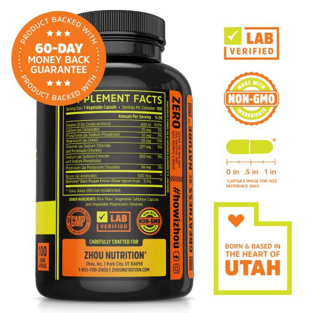 Zhou Lyte Up Advanced Electrolyte Supplement | Rehydrate After a Workout or Support a Keto Diet with Calcium | 100 CT