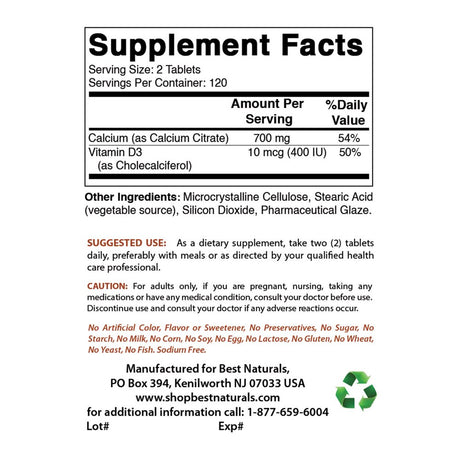 Best Naturals Calcium Citrate with Vitamin D-3 240 Tablets