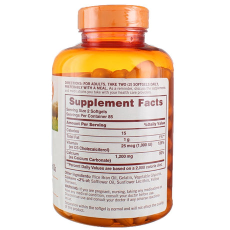 Sundown Naturals Calcium plus Vitamin D3, 1200Mg, Softgels 170 Ea (Pack of 2)
