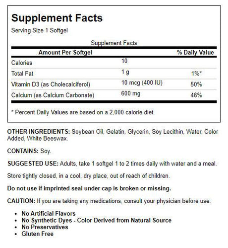 Nature Made Calcium 600 Mg with Vitamin D3 Softgels, Dietary Supplement, 100 Count