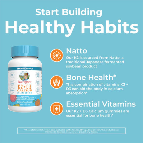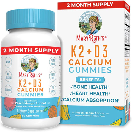 Maryruth'S Vitamin K2 + D3 Calcium Gummies - Bone Health - Peach, Mango & Apricot (60 Gummies)
