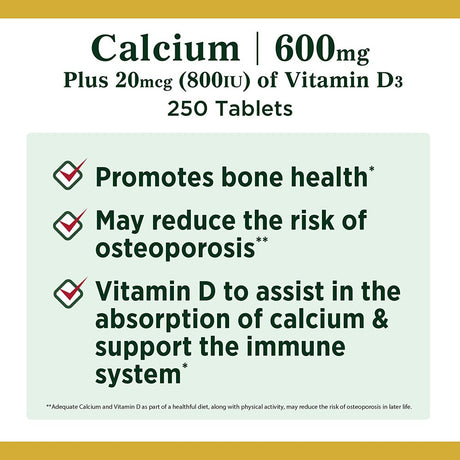Nature'S Bounty Calcium 600 with Vitamin D3 Tablets 250 Tablets