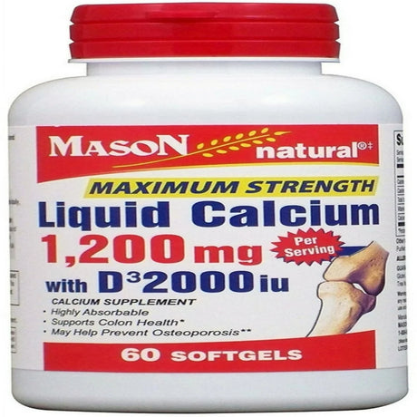 Mason Natural Liquid Calcium 1200 Mg with D3 2000 IU Softgels 60 Ea (Pack of 2)