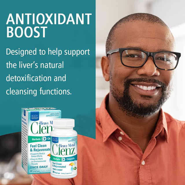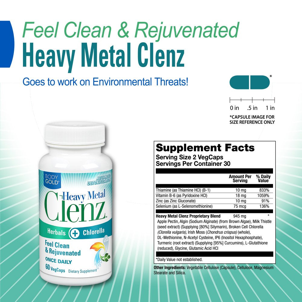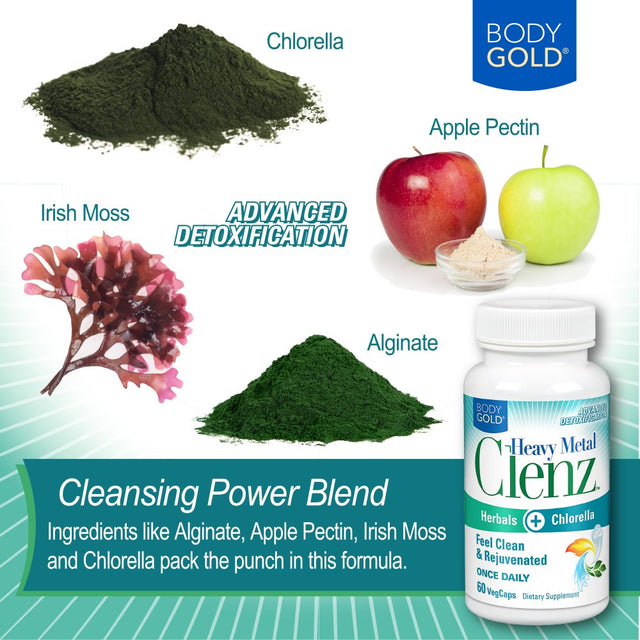 Body Gold Heavy Metal Clenz | Herbals & Chlorella for Healthy Detoxification & Cleansing Support | 30 Serv, 60 Vegcaps