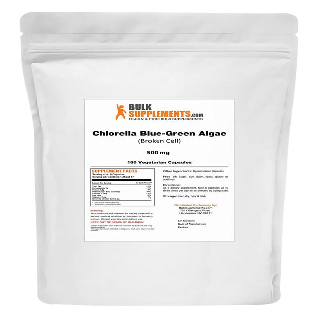 Bulksupplements.Com Chlorella Blue-Green Algae Capsules - Green Superfood Supplement - Chlorella Pills (100 Vegetarian Capsules - 17 Servings) is backordered and will ship as soon as it is back in stock.