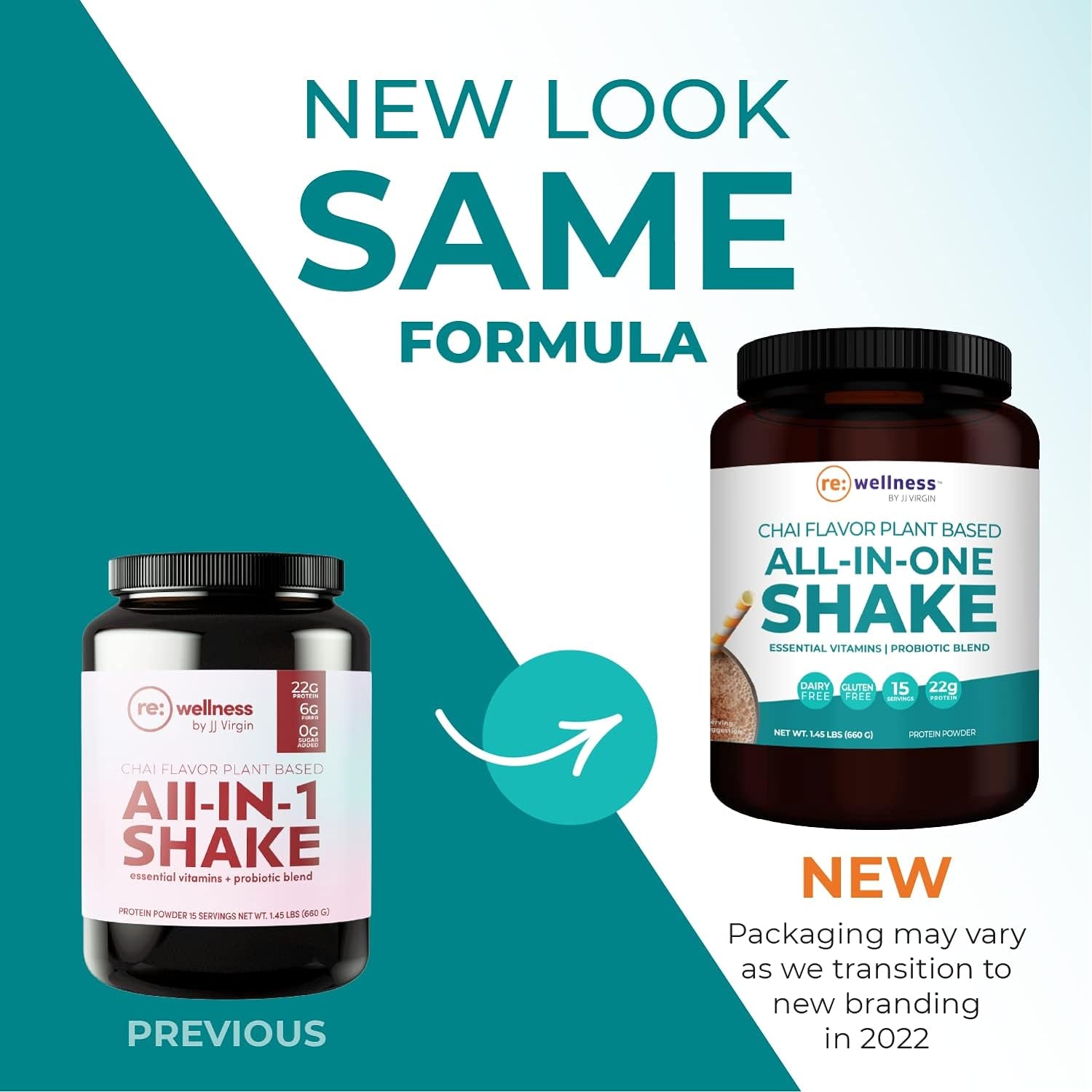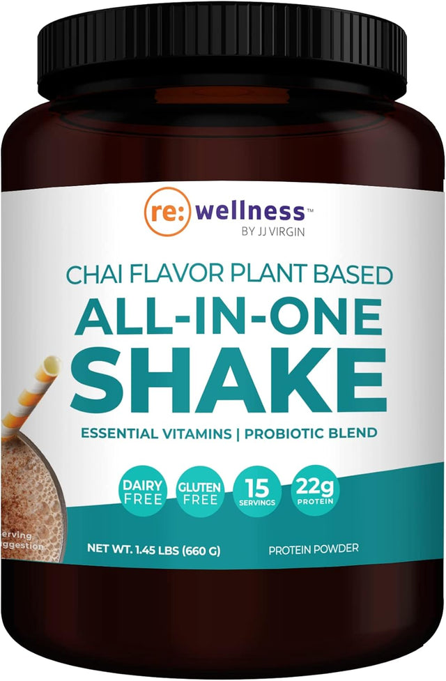 By JJ Virgin Chai Plant Based All in 1 Shake - Chia, Chlorella, Pea Protein Powder - Contains Essential Vitamins & Probiotic Blend to Support Immunity + Gut Health (15 Servings)
