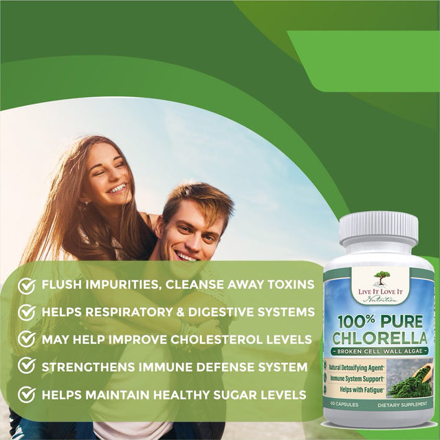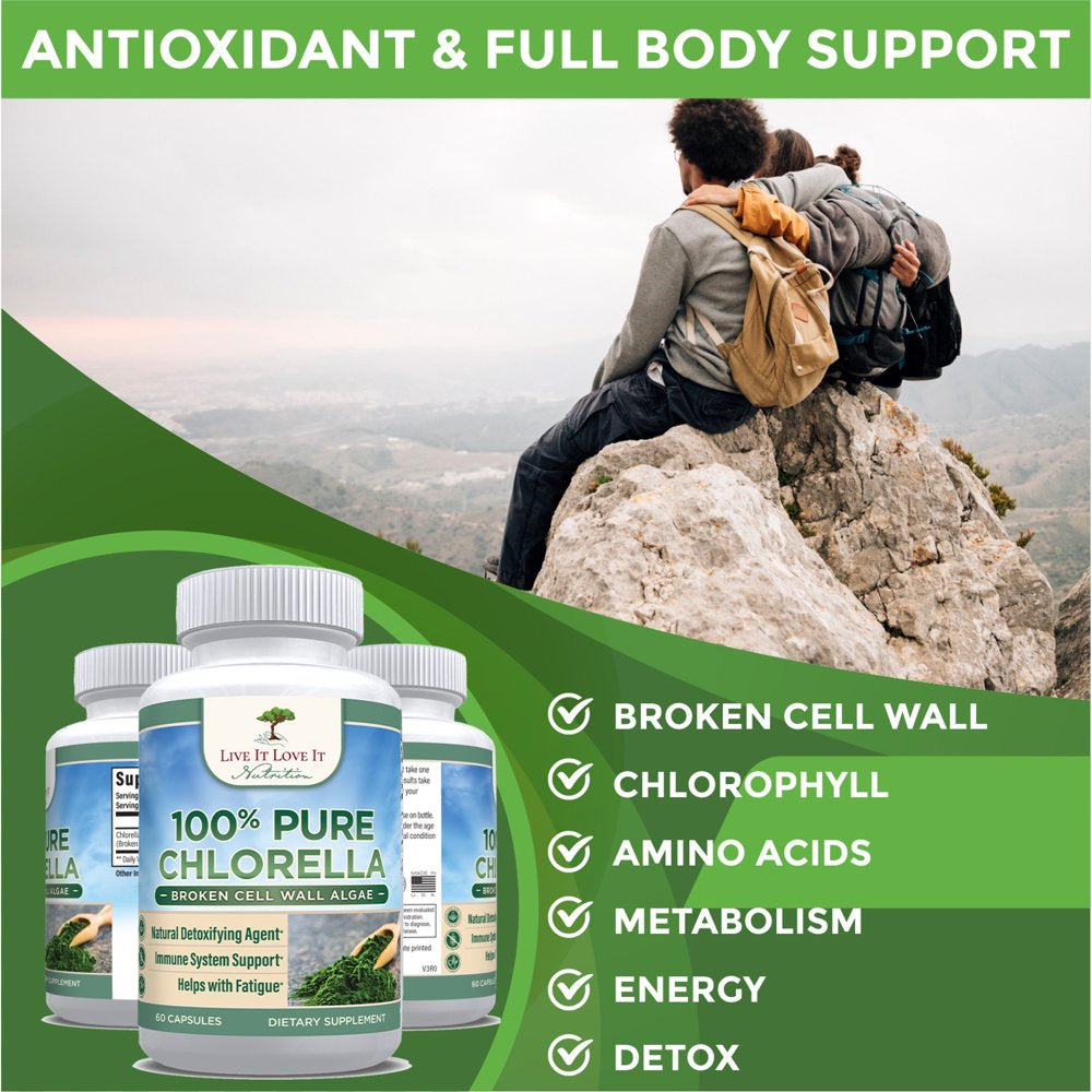- • Aiding Detox: Chlorella provides a natural detox that helps improve circulation and a healthy metabolism. Chlorella has been found to weaken the heavy metal toxicity of the liver, brain, and kidneys.