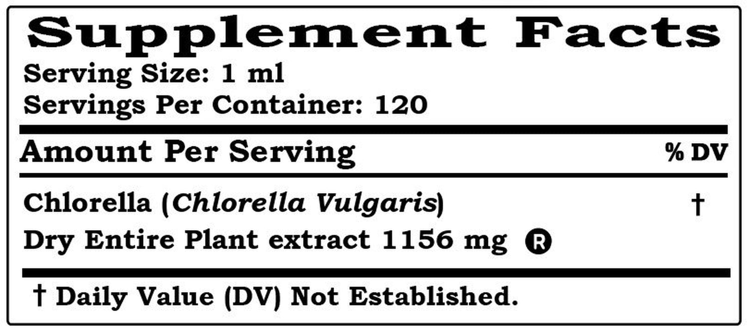 Chlorella (Chlorella Vulgaris) extractives. Menstruum: vegetable USP Grade Glycerin (60%), water (40%)./div>