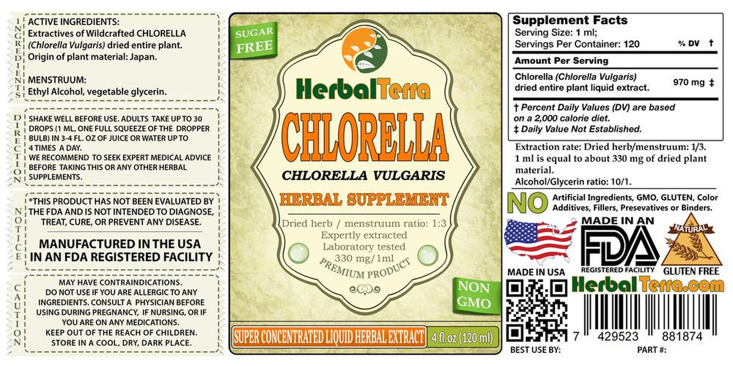 | Product Name | Chlorella (Chlorella Vulgaris) Tincture, Dried Entire Plant Liquid Extract (Herbal Terra, USA) 2x2 oz |