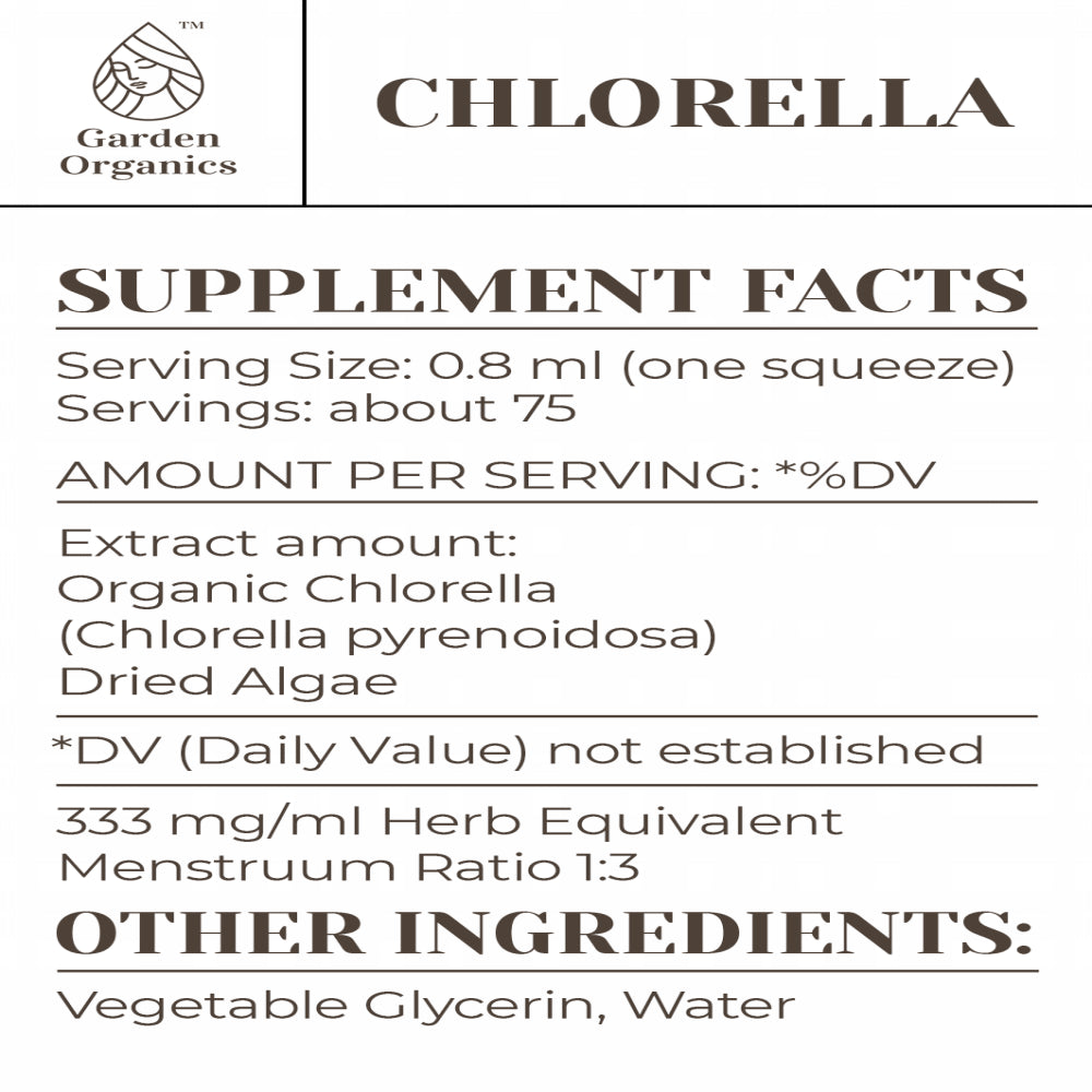 Garden Organics Chlorella Tincture Alcohol-Free Extract, Organic Chlorella (Chlorella Vulgaris) Dried Algae 2 Fl Oz