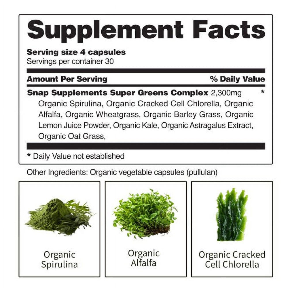 Snap Supplements Spirulina & Chlorella - Organic Heart Support & Natural Energy, 120 Capsules - 120 Capsules, 1-Pack is backordered and will ship as soon as it is back in stock.