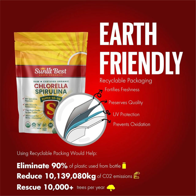 Sunlit Super 50/50 Organic Chlorella Spirulina Tablets - Super Supplement for Immune Support, Gut Health, Mood & Energy - Rich in Chlorophyll, Amino Acids & Vegan Protein, 500 Superfood Tabs