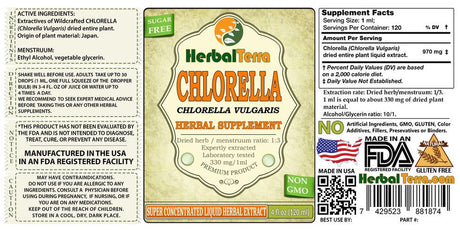 Chlorella Tincture Alcohol-Free Extract, Organic Chlorella (Chlorella Vulgaris) Dried Algae 4 Oz