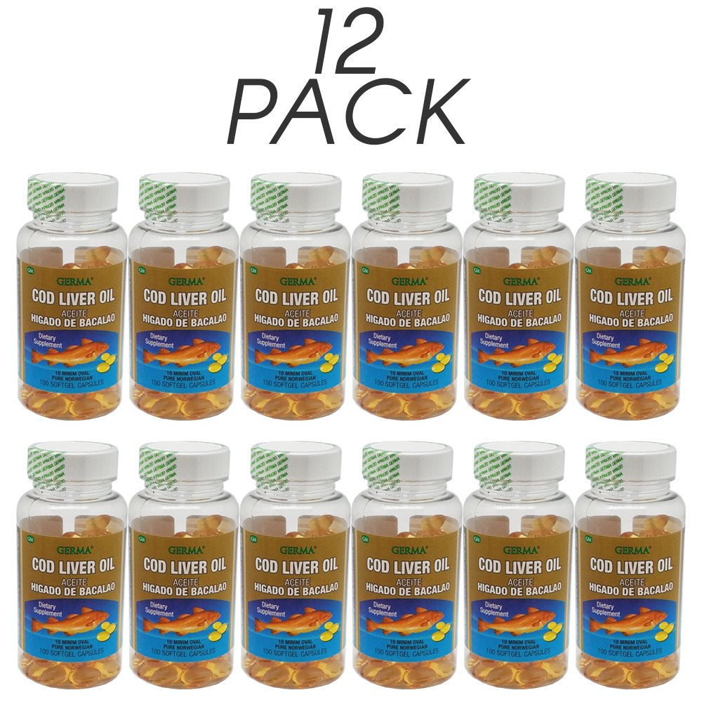 Germa Cod Liver Oil Natural Dietary Supplement. Improves Cognitive Peformance & Joint Health. 100 Capsules. Pack of 12 is backordered and will ship as soon as it is back in stock.