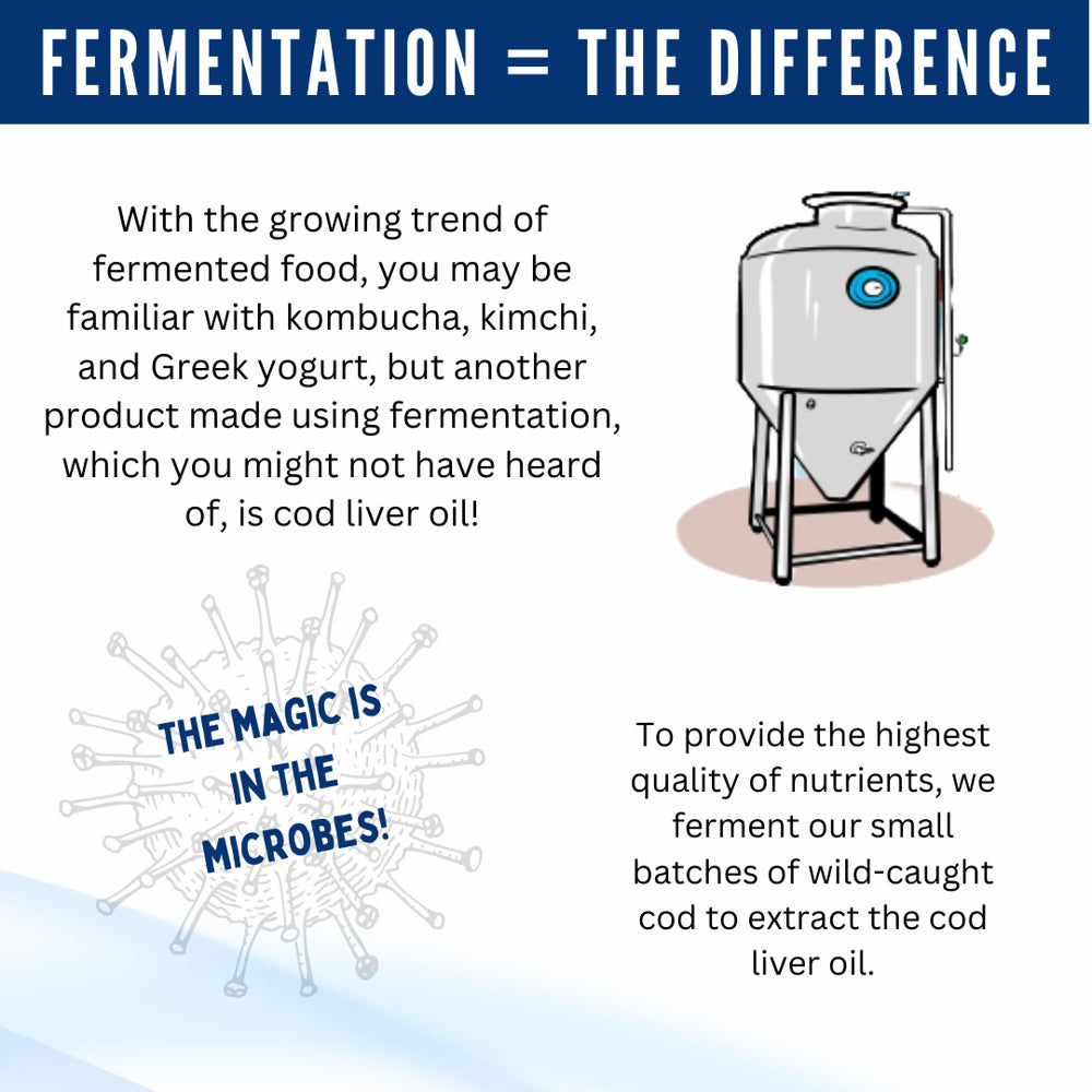 Green Pasture Products uses fermentation as a gentle method of extraction to keep fragile nutrients (such as Omega-3, Vitamin A, Vitamin D, EPA and DHA) intact, and help your body assimilate those nutrients without adding in synthetic lab made vitamins! We pride ourselves on using a traditional method with modern day scientific standards.