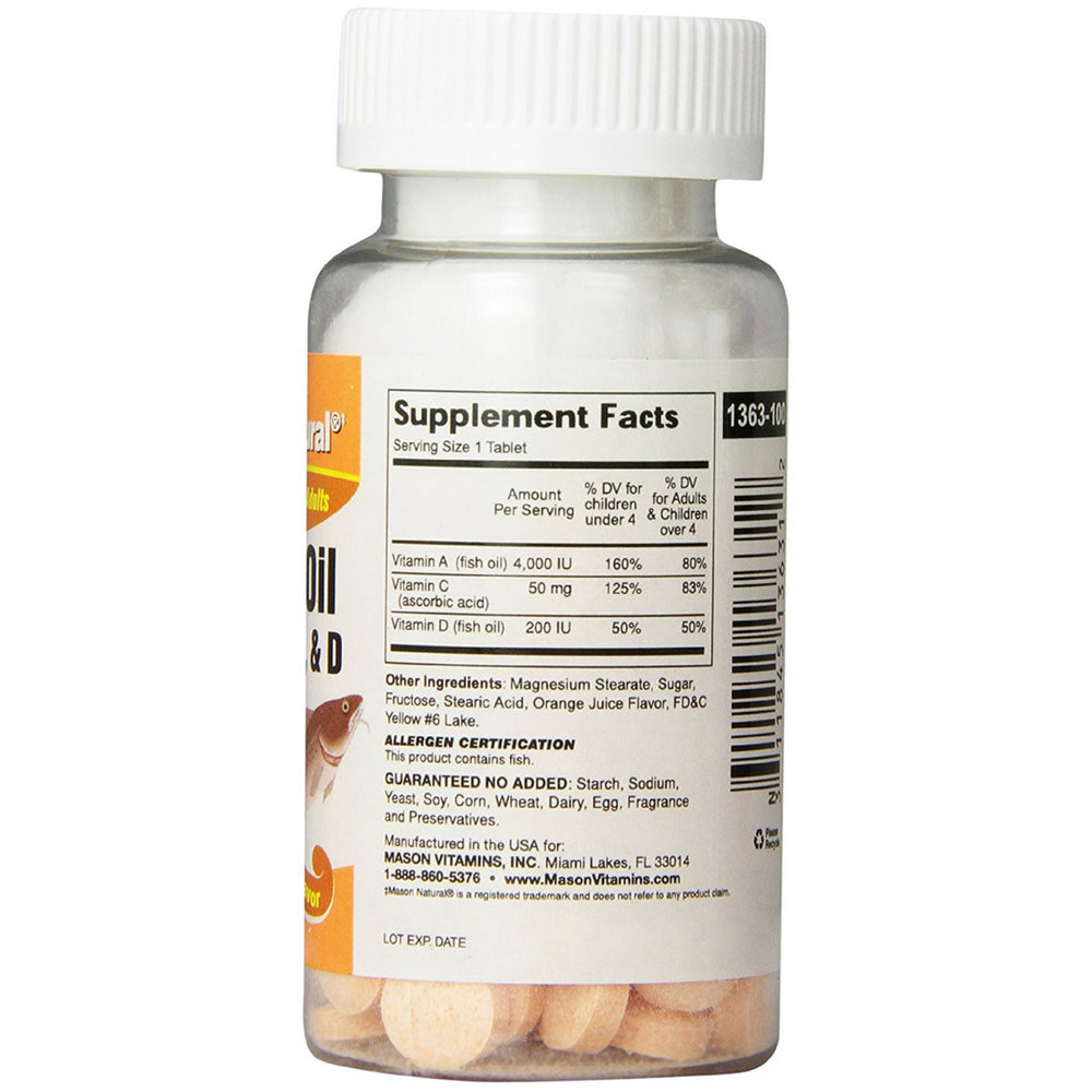 Mason Natural Cod Liver Oil Chewable Tablets, Orange Flavor 100 Ea (Pack of 4)