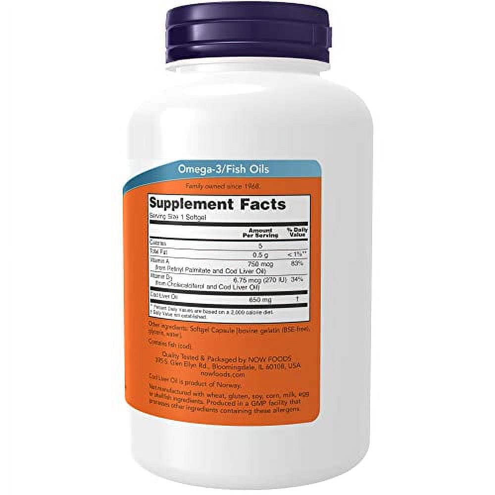 NOW Supplements, Cod Liver Oil 650 Mg, Excellent Source of Vitamins a and D-3, 250 Softgels