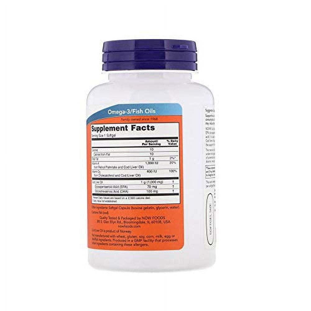 NOW Supplements, Cod Liver Oil, Extra Strength 1,000 Mg with Vitamins a & D-3, EPA, DHA, 90 Softgels
