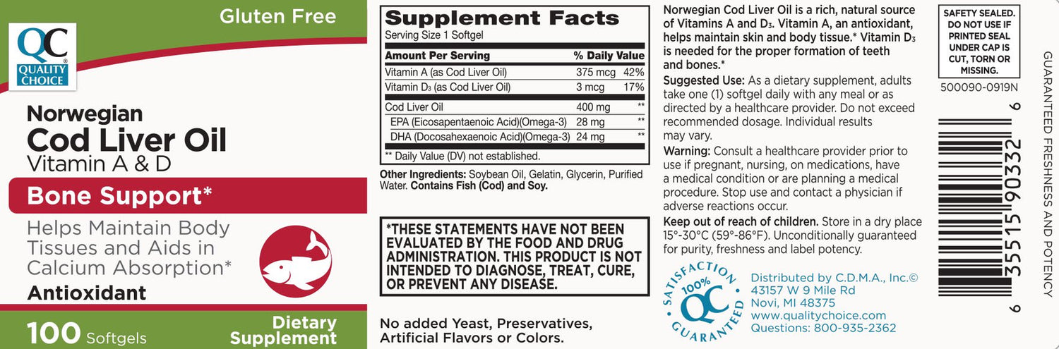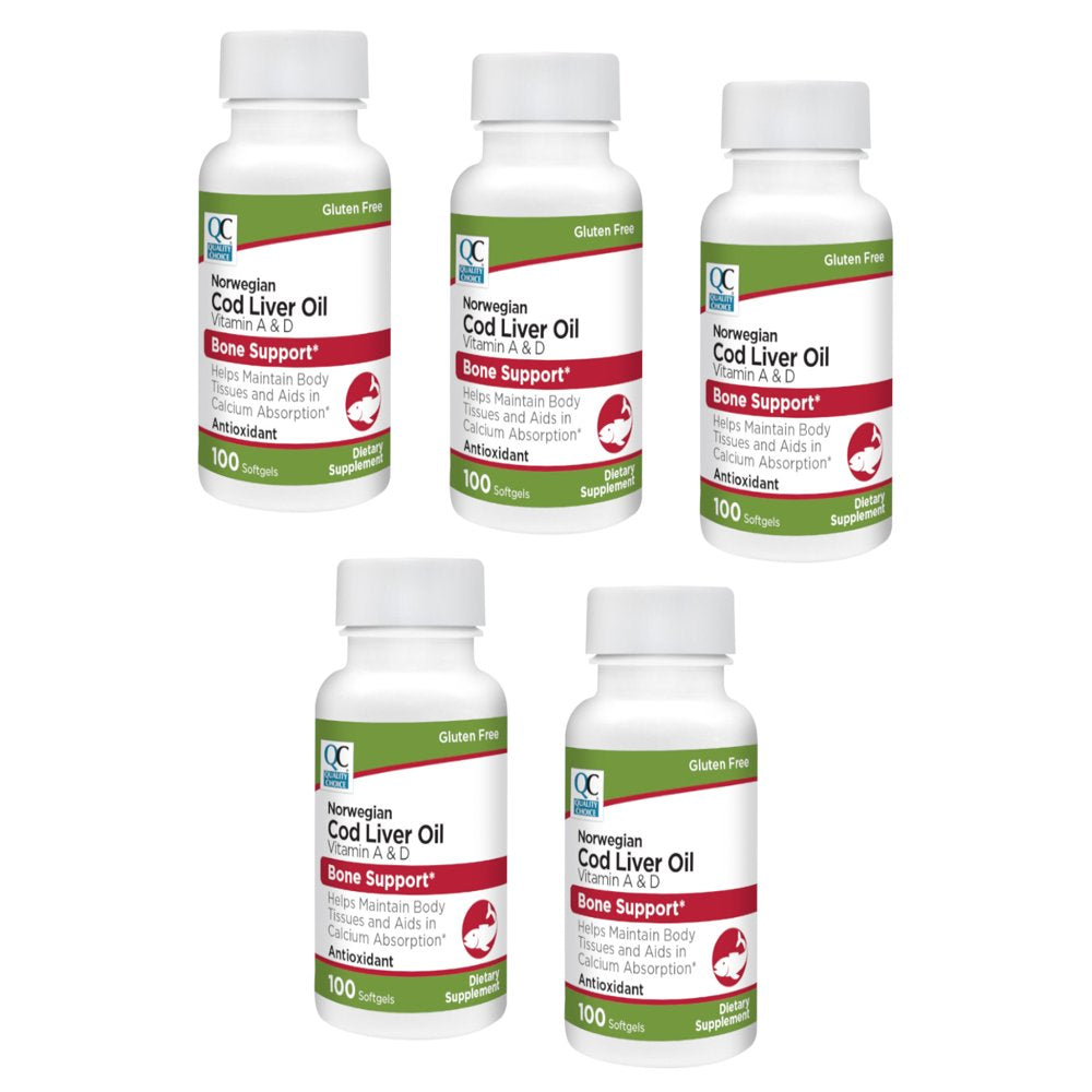 Quality Choice Norwegian Cod Liver Oil Vitamin a & D Bone Support Softgels, 100 Count - Pack of 5