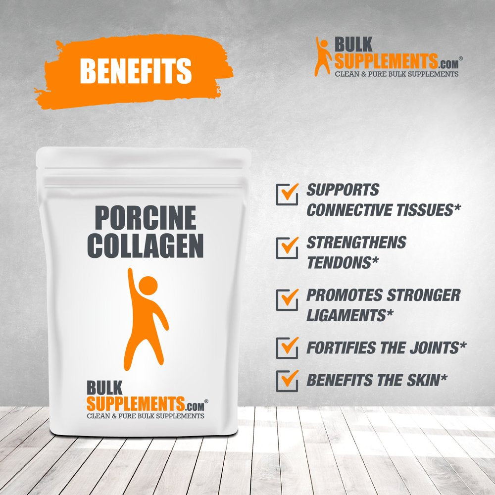- Pure Hydrolyzed Collagen Powder (Porcine), Porcine Collagen Powder, supports and strengthens connective tissues such as ligaments and tendons.†