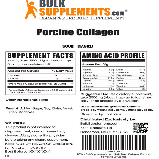 Bulksupplements.Com Hydrolyzed Collagen (Porcine) Powder - Collagen Protein Powder - Keto Collagen Powder - Collagen Peptides Powder (500 Grams) - 500 Grams (1.1 Lbs) is backordered and will ship as soon as it is back in stock.