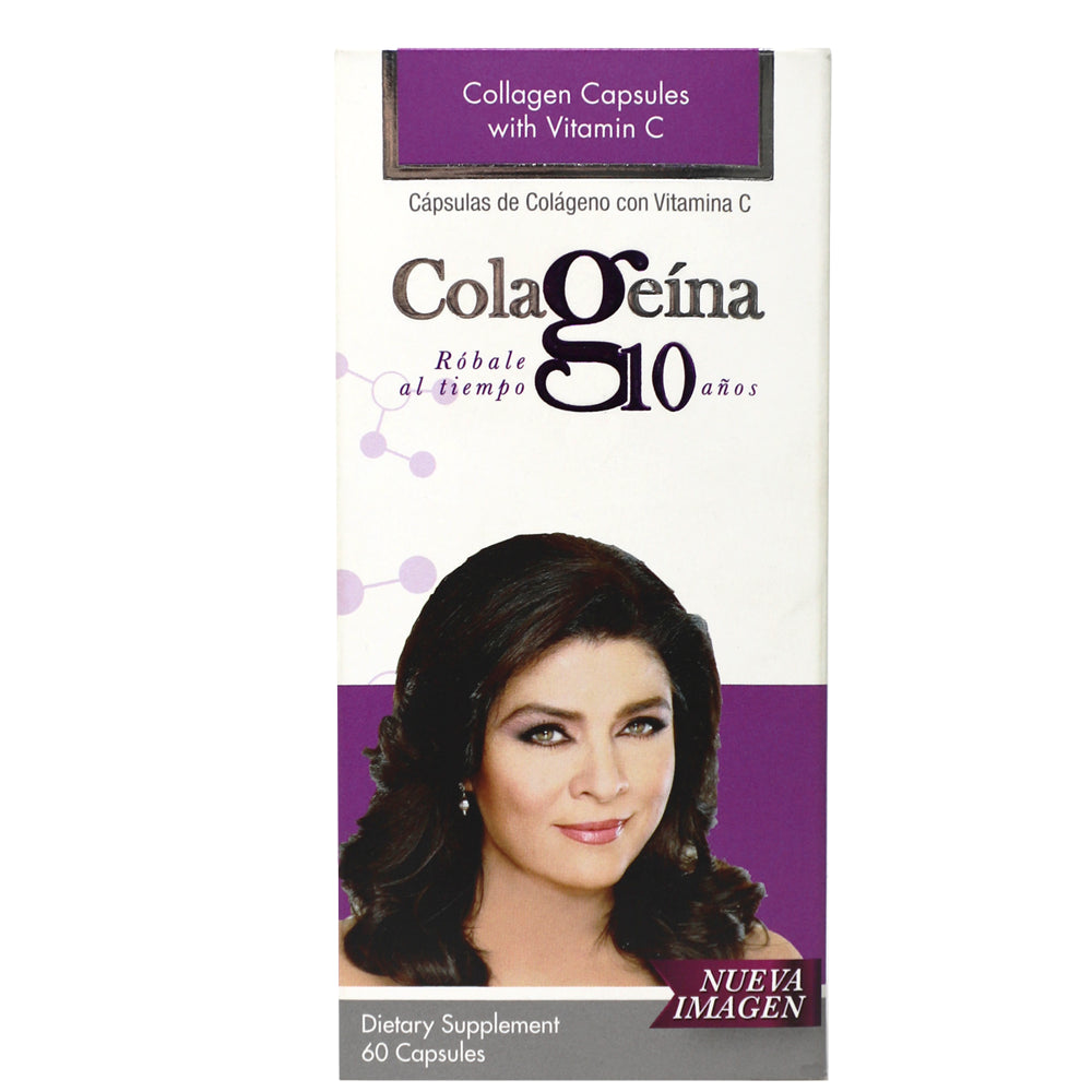 Colageina 10, 60 Capsules, makes it easier for your body to absorb collagen, which is essential for healthy skin, hair, nails and joints. Colageina 10 also promotes elasticity and hydration of the skin, for a younger look, improves skin smoothness, minimizes fine lines and wrinkles, reducing the signs of aging. Revitalize your body from the inside out, in an easier way for your body to absorb collagen. Collagen colageina 10 Fine line Wrinkle Reducer, for stronger nails, healthy joints. With Vitamin C. For Adults only.