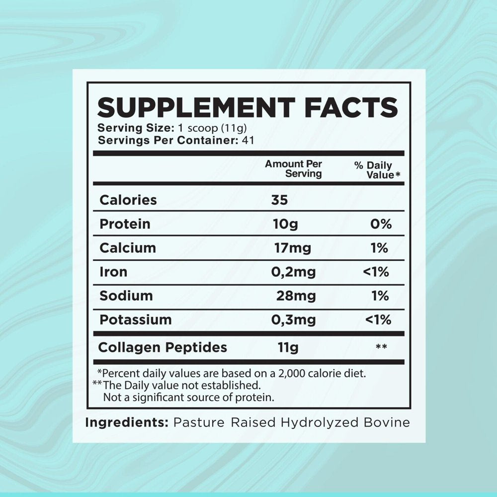 • Pure Collagen Powder — Pasture-raised, Grass-fed, 100% Natural. Type I & III